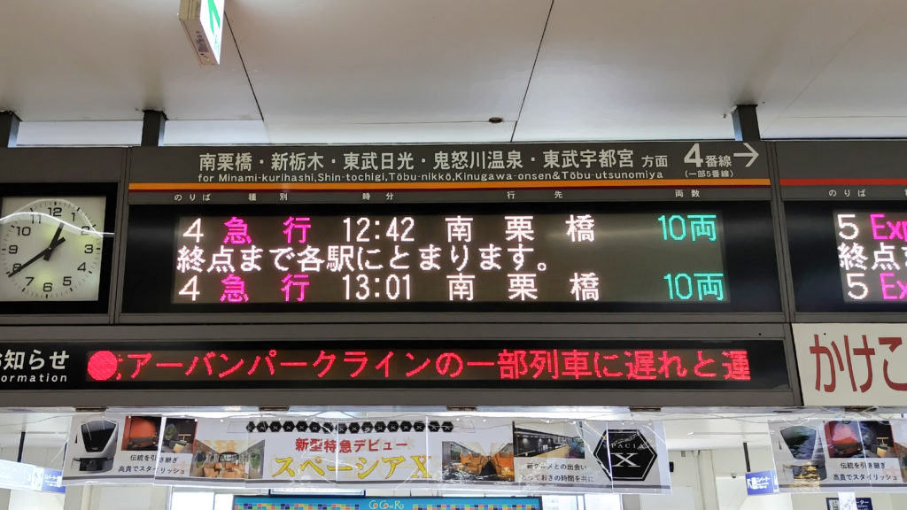 東武伊勢崎線は急行列車以外だと久喜駅止まりか館林駅止まりで運行されており、その先については館林駅での乗り換えとなります。