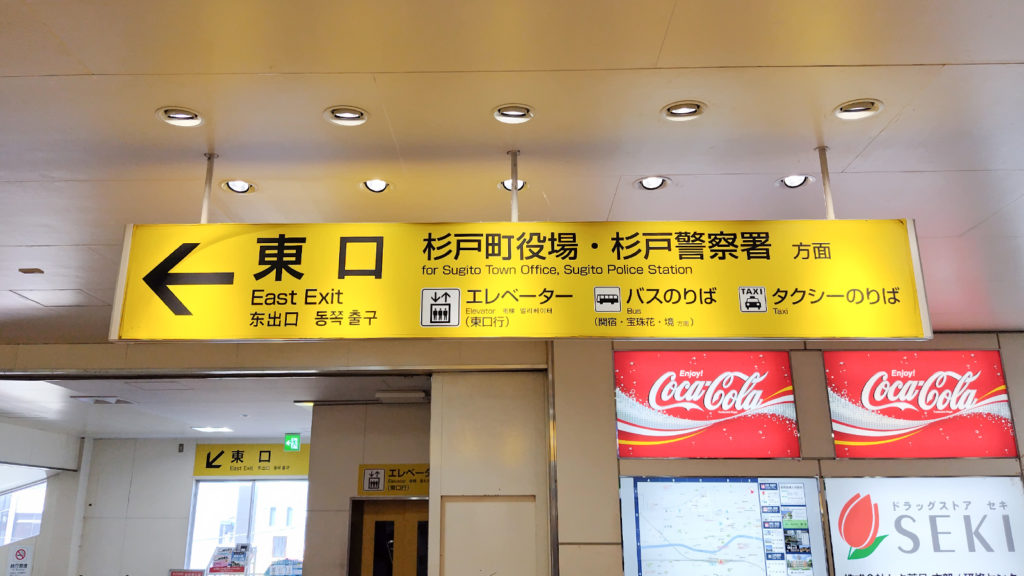 杉戸町役場に杉戸警察方面出口です。東口周辺は宮代町なのですが、ちょっと歩いて川を渡るとすぐに杉戸町。さすが元・杉戸駅ですね。
