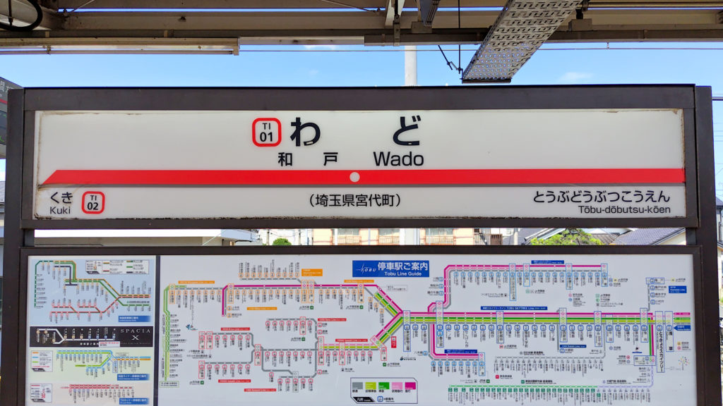 東武動物公園駅の次の駅の駅名標が、赤色ベースの「和戸駅」であれば、それは東武伊勢崎線です。どの列車も久喜行か館林行だと思いますが、館林駅から先は足利駅、太田駅、伊勢崎駅、赤城駅と主に群馬県方面に行く路線です。