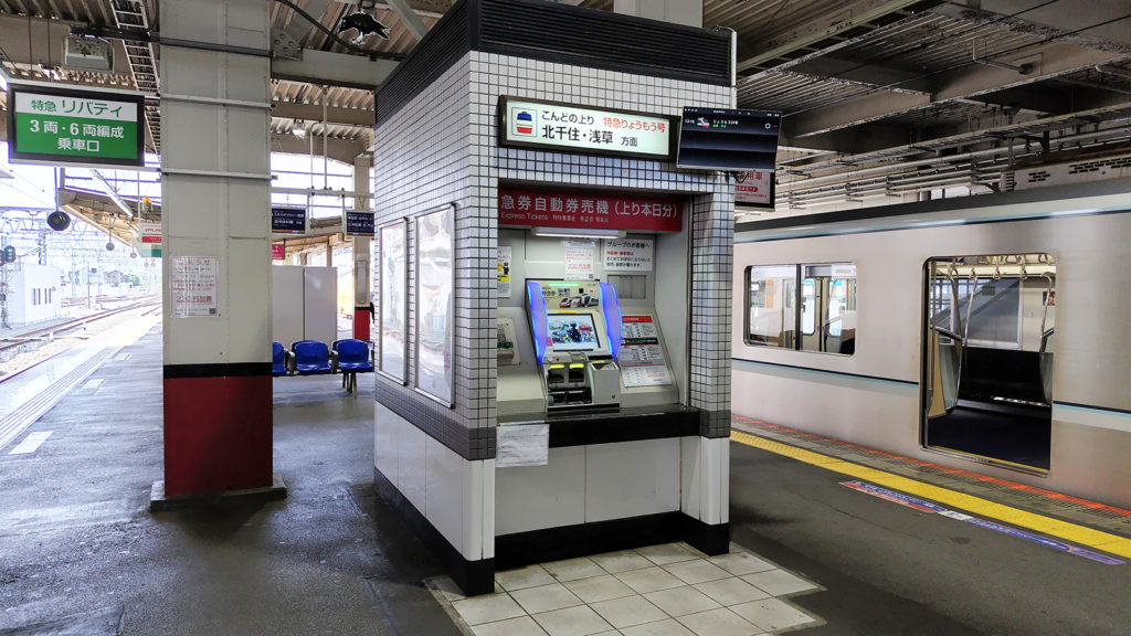 2、3番線ホームには当日の特急券などの乗車券が購入できる発券機が設置されています。