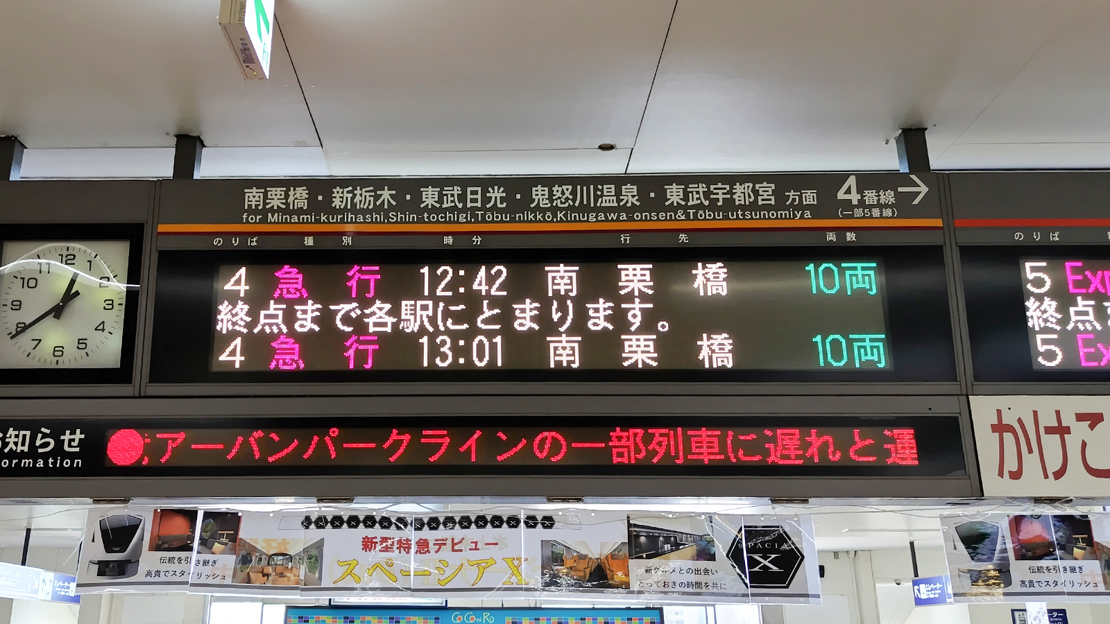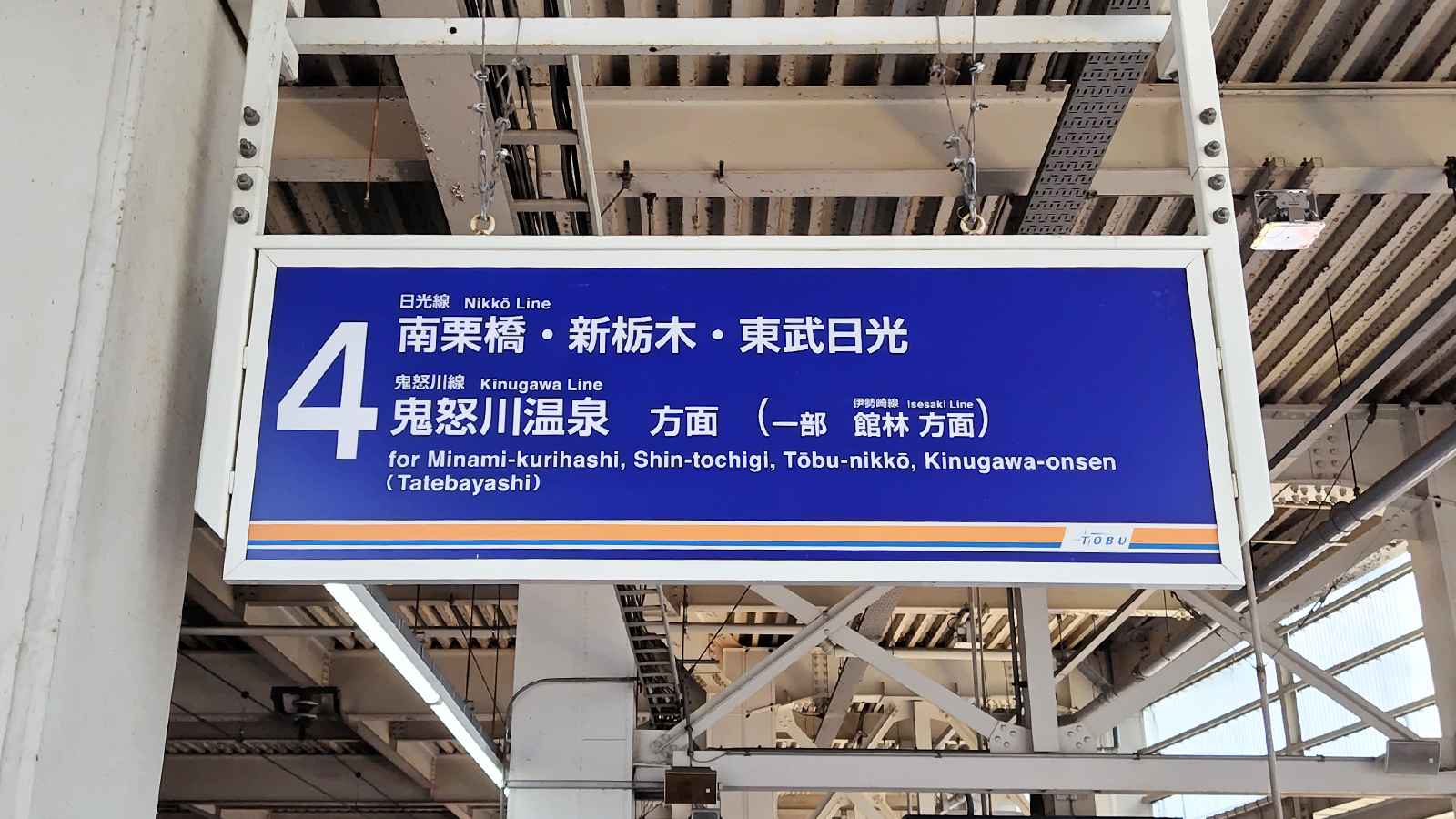4番線ホームは日光や鬼怒川方面へ向かう東武日光線のホームです。