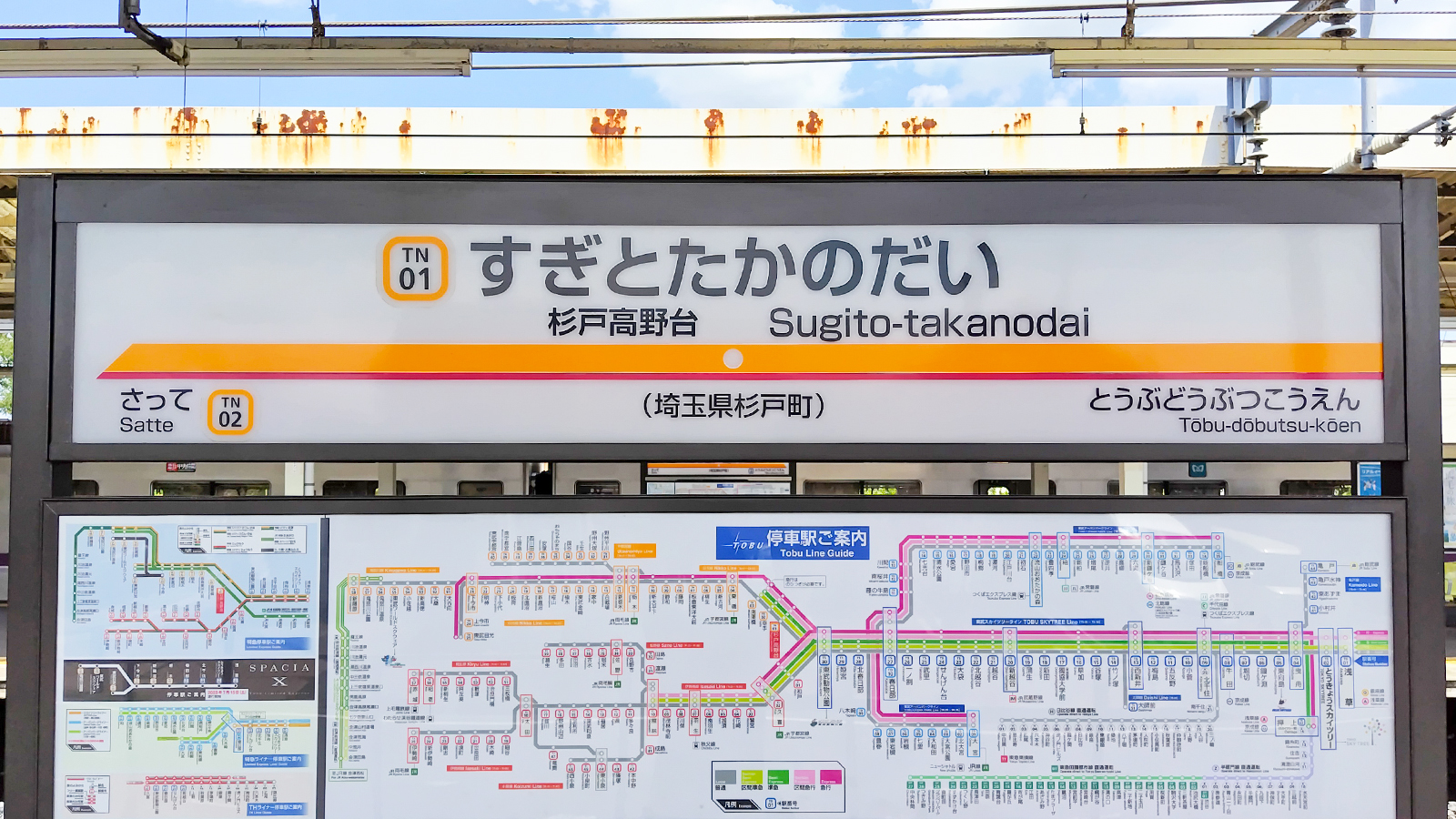 東武動物公園駅の次の駅の駅名標が、オレンジ色ベースの「杉戸高野台駅」であれば、それは東武日光線です。どの列車も南栗橋行だと思いますが。その先は新栃木駅、下今市駅、東武日光駅や鬼怒川温泉駅など主に栃木県方面に行く路線です。