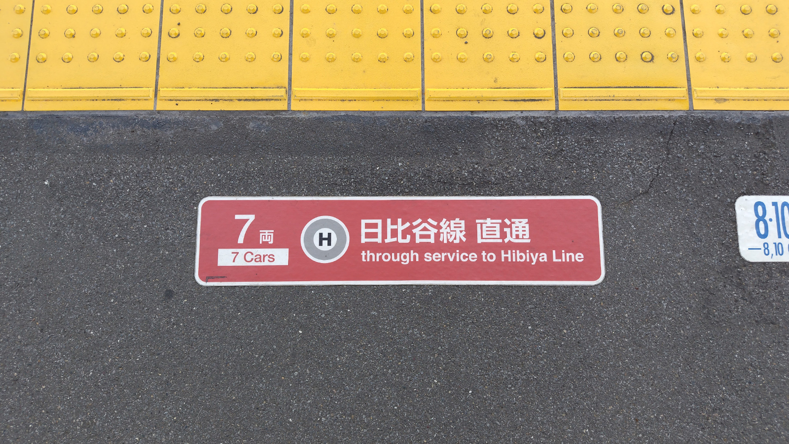 東武伊勢崎線5番線ホームには特急列車も停車しますので、あちこちに特急乗車位置を示す印がございます。