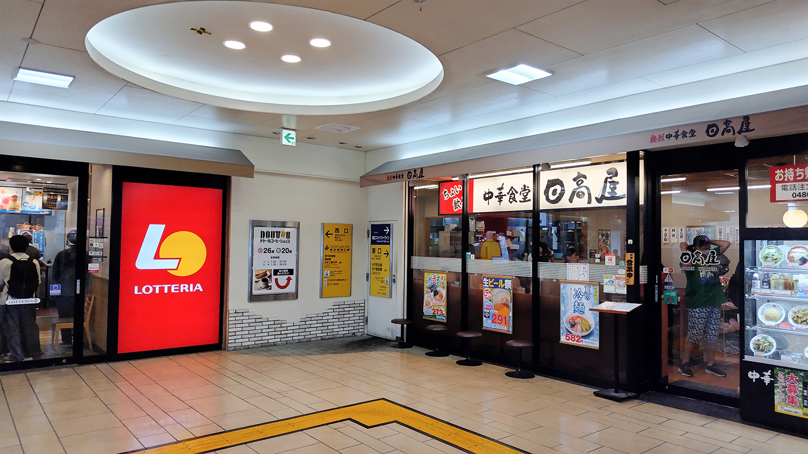 巨大なテーマパークの最寄り駅なので、駅利用者が多いのでしょうか、東武動物公園駅の改札を抜けると駅構内には珈琲、ハンバーガー、中華料理など飲食店が軒を連ねております。