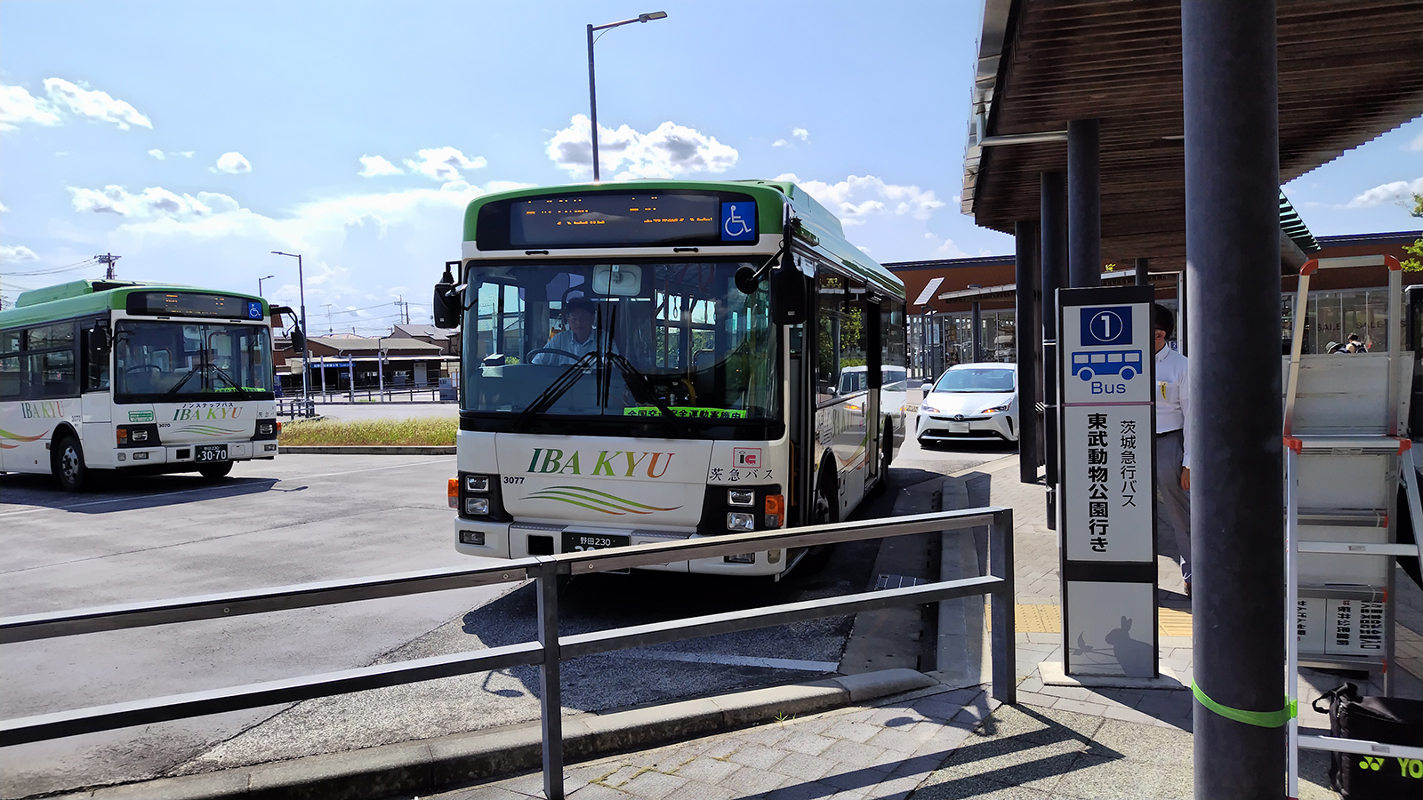 西口へ出ると整備されたロータリーにバス乗り場やタクシー乗り場が広がります。東武動物公園へ行かれる方は、東武動物公園直行バスに乗れば5分ほどで到着いたします。